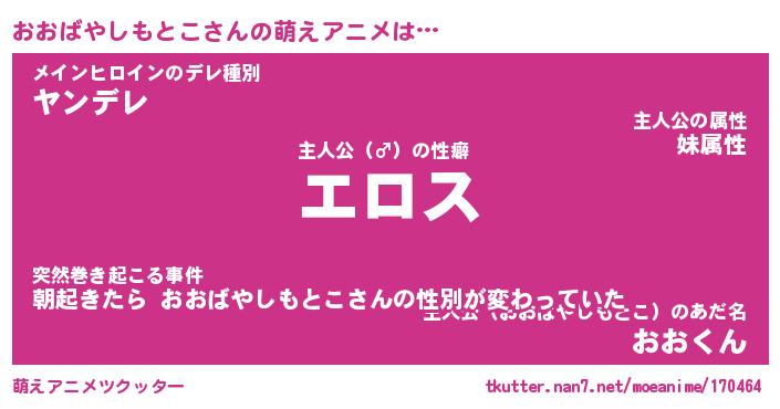 | 男性向けラノベタイトル風あだ名 | 『オオバヤシモトコアートオンライン』 |