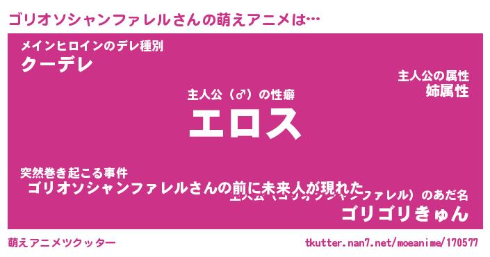 | 女子向けラノベタイトル風あだ名 | 『誰かこのゴリオソシャンファレルを説明してください! ~契約から始まるウェディング~』 |