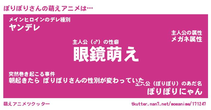 | 男性向けラノベタイトル風あだ名 | 『ぽりぽりの憂鬱』 |