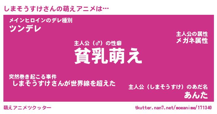 | 男性向けラノベタイトル風あだ名 | 『しまそうすけの憂鬱』 |