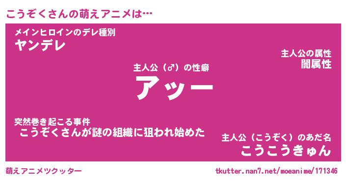 | 男性向けラノベタイトル風あだ名 | 『コウゾクアートオンライン』 |