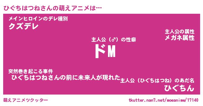 | 女子向けラノベタイトル風あだ名 | 『(仮)ひぐちはつねのやんごとなき事情』 |
