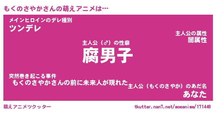 | 男性向けラノベタイトル風あだ名 | 『モクノサヤカアートオンライン』 |