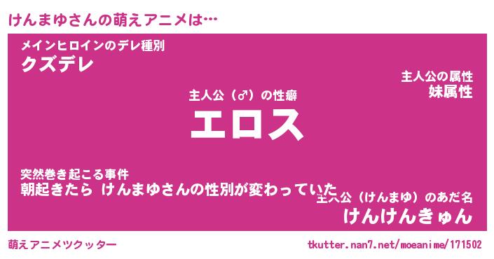 | 男性向けラノベタイトル風あだ名 | 『ケンマユアートオンライン』 |