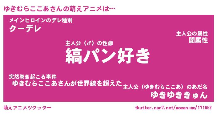 | 男性向けラノベタイトル風あだ名 | 『ゆきむらここあの憂鬱』 |