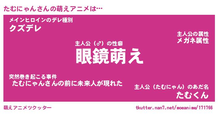 | 男性向けラノベタイトル風あだ名 | 『たむにゃんの憂鬱』 |