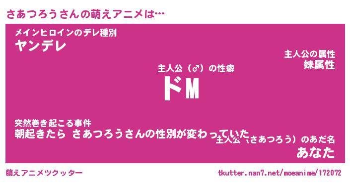 | 男性向けラノベタイトル風あだ名 | 『さあつろうの憂鬱』 |