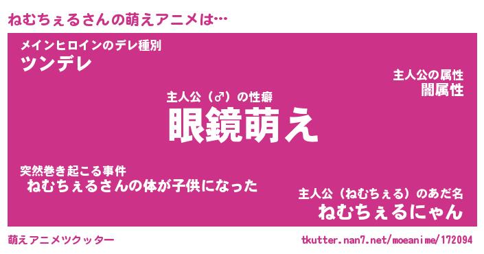 | 男性向けラノベタイトル風あだ名 | 『ねむちぇるの憂鬱』 |