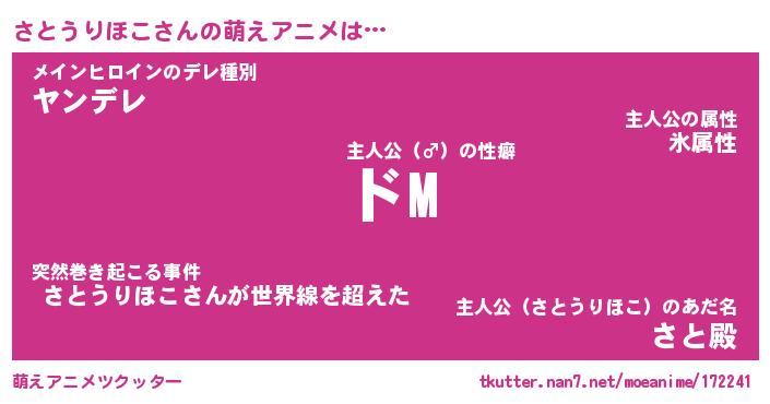 | 女子向けラノベタイトル風あだ名 | 『(仮)さとうりほこのやんごとなき事情』 |