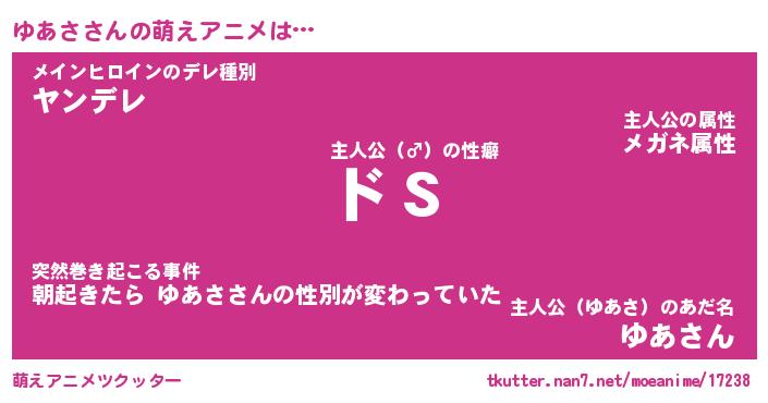 | 女子向けラノベタイトル風あだ名 | 『(仮)ゆあさのやんごとなき事情』 |