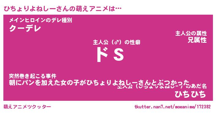 | 男性向けラノベタイトル風あだ名 | 『ひちょりよねしーの憂鬱』 |
