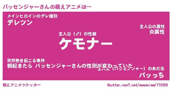 | 男性向けラノベタイトル風あだ名 | 『パッセンジャーアートオンライン』 |
