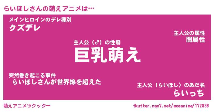 | 男性向けラノベタイトル風あだ名 | 『らいほしの憂鬱』 |