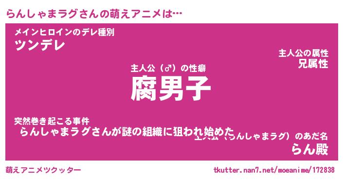 | 肩書あだ名 | 『らんしゃまラグ社長令嬢』 |