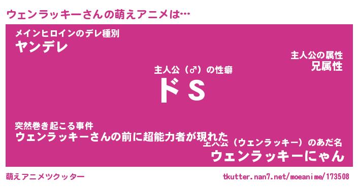 | 男性向けラノベタイトル風あだ名 | 『ウェンラッキーの憂鬱』 |