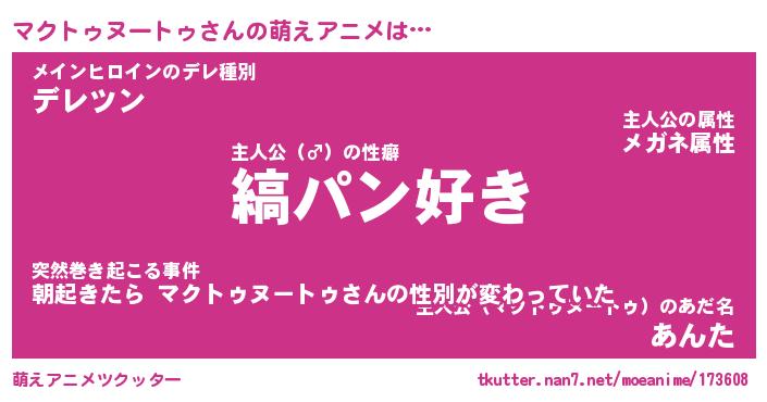| 男性向けラノベタイトル風あだ名 | 『マクトゥヌートゥの憂鬱』 |