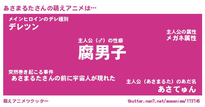 | 胡散臭い通販商品みたいなあだ名 | 『モテモテ間違いなしブレスレット…その名も「あさまるた」』 |