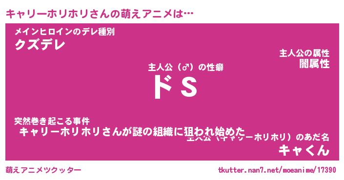| 男性向けラノベタイトル風あだ名 | 『キャリーホリホリの憂鬱』 |