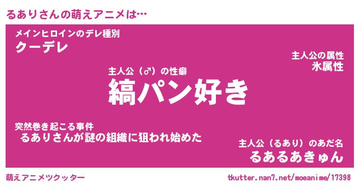 | 男性向けラノベタイトル風あだ名 | 『るありの憂鬱』 |