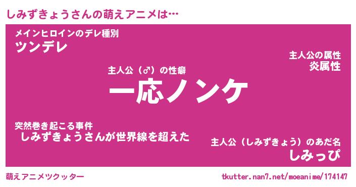 | 男性向けラノベタイトル風あだ名 | 『シミズキョウアートオンライン』 |