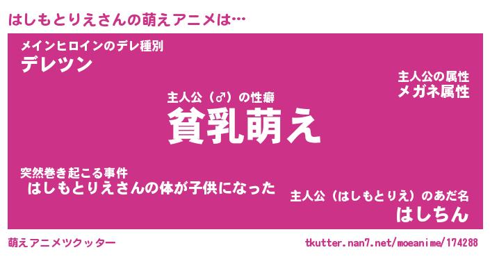 | 男性向けラノベタイトル風あだ名 | 『はしもとりえの憂鬱』 |