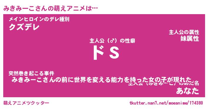 | 男性向けラノベタイトル風あだ名 | 『みきみーこの憂鬱』 |