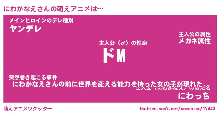 | 男性向けラノベタイトル風あだ名 | 『にわかなえの憂鬱』 |