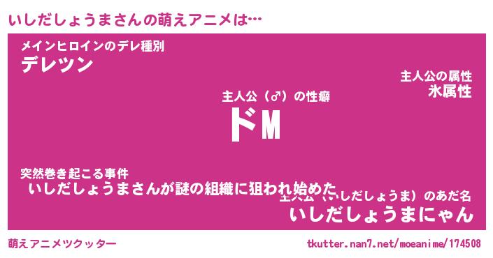 | 女子向けラノベタイトル風あだ名 | 『(仮)いしだしょうまのやんごとなき事情』 |
