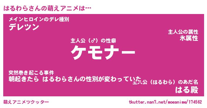 | 2回繰り返すあだ名 | 『はるはる』『ははるる』『かんかん』 |