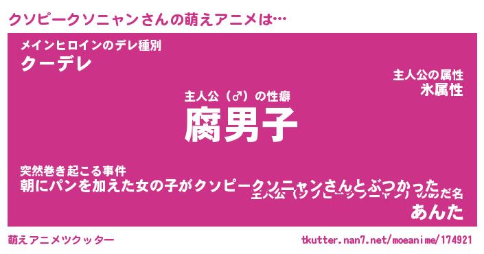 | 男性向けラノベタイトル風あだ名 | 『クソピークソニャンアートオンライン』 |