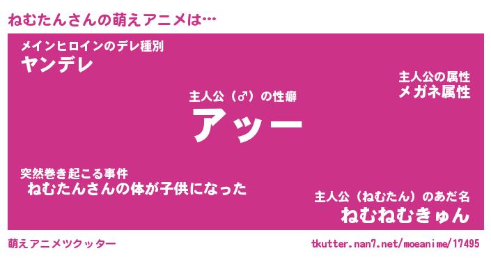 | 意味不明あだ名 | 『ペロリンねむたん』『永久保存ねむたん』 |