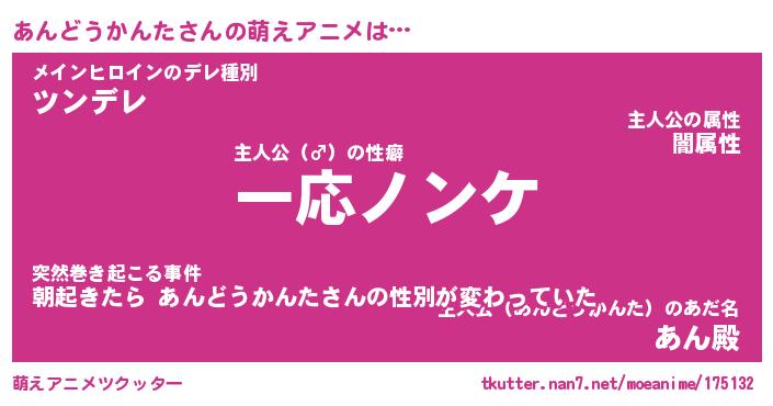 | 女子向けラノベタイトル風あだ名 | 『誰かこのあんどうかんたを説明してください! ~契約から始まるウェディング~』 |