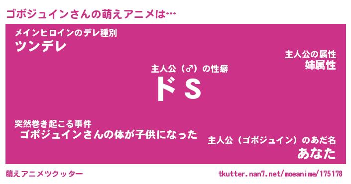 | 女子向けラノベタイトル風あだ名 | 『(仮)ゴボジュインのやんごとなき事情』 |