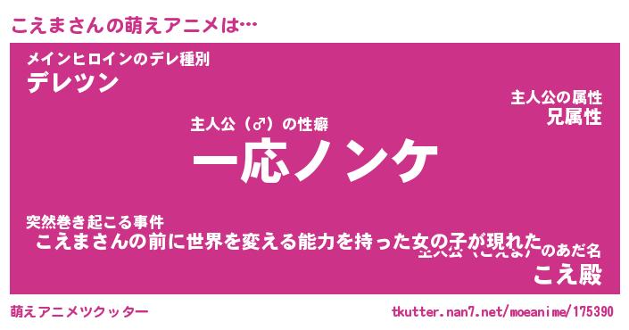 | 男性向けラノベタイトル風あだ名 | 『コエマアートオンライン』 |