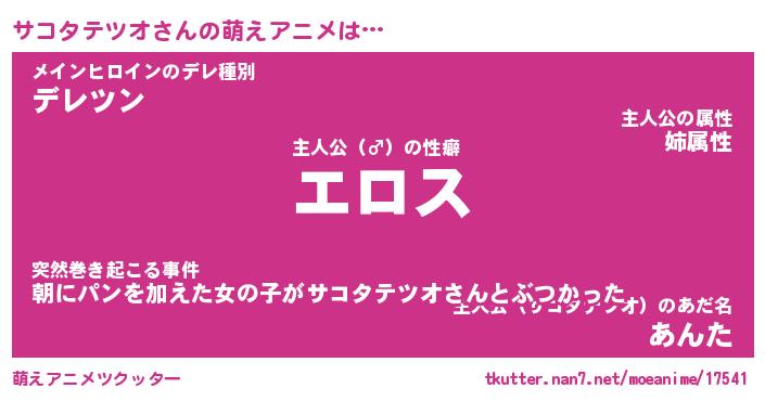 | 男性向けラノベタイトル風あだ名 | 『サコタテツオアートオンライン』 |