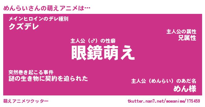 | 男性向けラノベタイトル風あだ名 | 『めんらいの憂鬱』 |