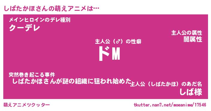 | 男性向けラノベタイトル風あだ名 | 『しばたかほの憂鬱』 |