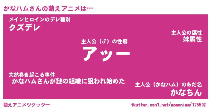 | 男性向けラノベタイトル風あだ名 | 『カナハムアートオンライン』 |