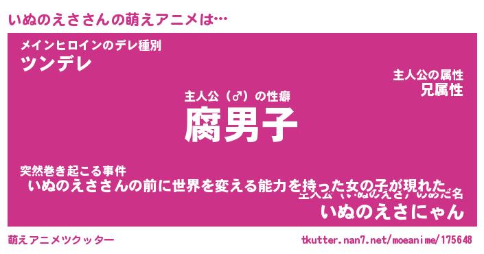 | 男性向けラノベタイトル風あだ名 | 『イヌノエサアートオンライン』 |