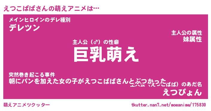 | 男性向けラノベタイトル風あだ名 | 『えつこばばの憂鬱』 |