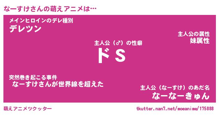 | 男性向けラノベタイトル風あだ名 | 『なーすけの憂鬱』 |