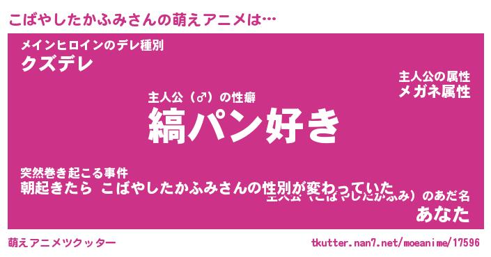 | 男性向けラノベタイトル風あだ名 | 『こばやしたかふみの憂鬱』 |