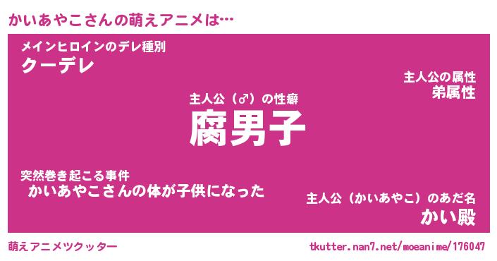 | 男性向けラノベタイトル風あだ名 | 『カイアヤコアートオンライン』 |