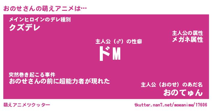 | 男性向けラノベタイトル風あだ名 | 『おのせの憂鬱』 |