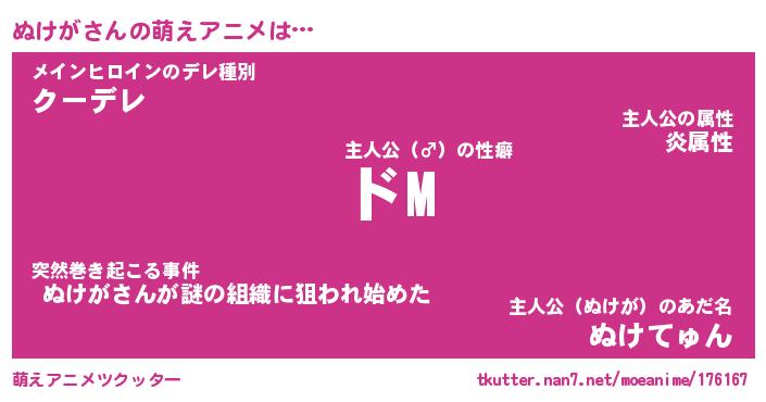 | 男性向けラノベタイトル風あだ名 | 『ぬけがの憂鬱』 |