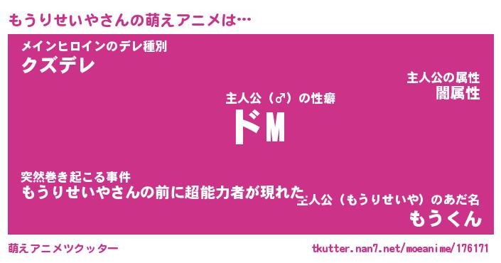 | 男性向けラノベタイトル風あだ名 | 『もうりせいやの憂鬱』 |