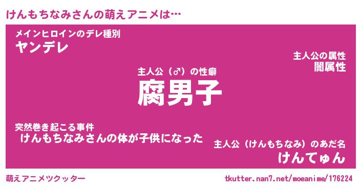| 男性向けラノベタイトル風あだ名 | 『ケンモチナミアートオンライン』 |