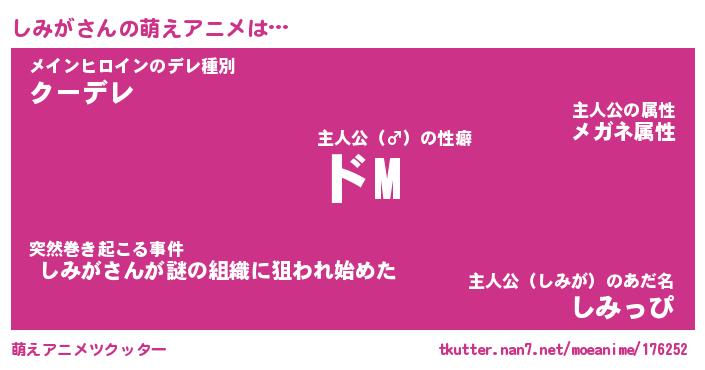 | 男性向けラノベタイトル風あだ名 | 『しみがの憂鬱』 |