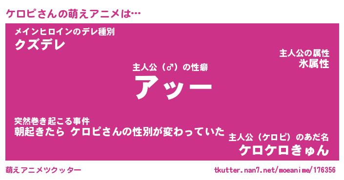 | 男性向けラノベタイトル風あだ名 | 『ケロピアートオンライン』 |