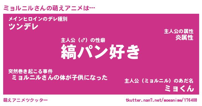 | ヒーロー風カッコイイあだ名 | 『スーパーミョルニル』『黄金騎士ミョ』 |